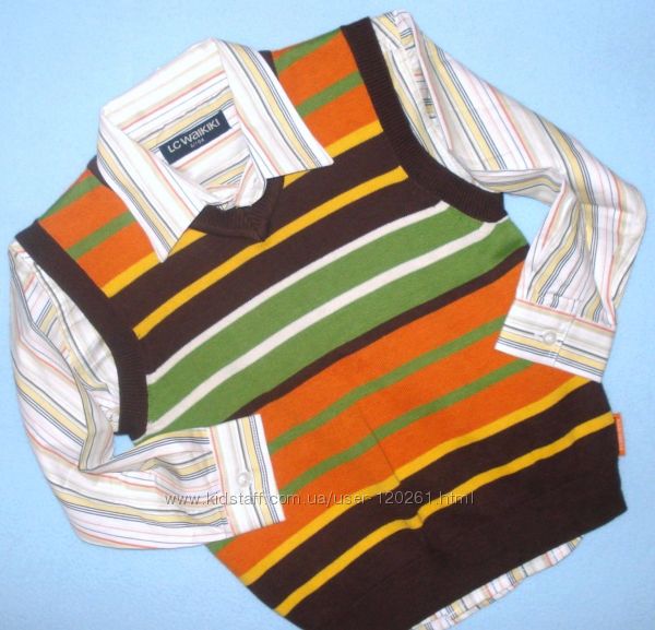 104см-Хлопковый жилетик тонкой вязки/рубашка