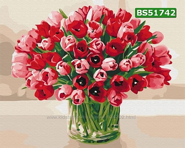 Картина по номерам Красный букет цветов, G299, 40х50см.