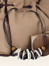 Ожерелье Сафари. Естественная неправильная форма элементов, нанизанных на хлопковый шнур, и бусины из натурального дерева подчеркивают близость к природе. Длина: 57,5 + 5,5 см дополнительно. 40 грн. бу.