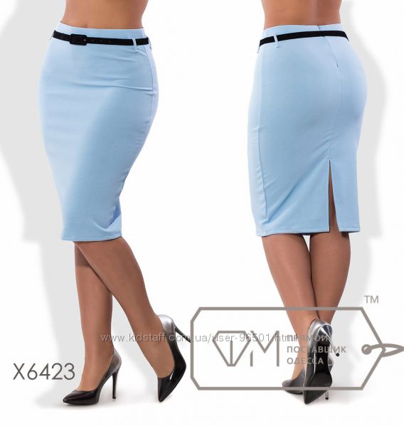 Модель № X6423 Цена: 360грн Размеры: 48, 50, 52, 54 Ткань: креп дайвинг Длина: 70см, (резинка+молния, пояс в комплекте)