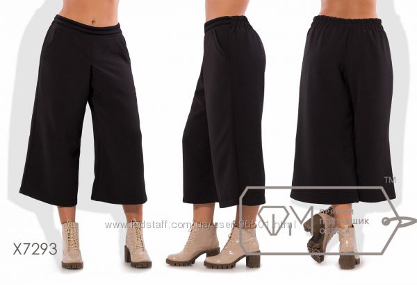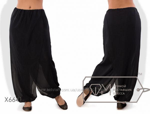 Модель № X7296 - ЧЕРНЫЙ Цена: 530грн Размеры: 48, 50, 52, 54, 56 Ткань: костюмка Длина: по внешнему шву - 104см, по внутреннему шву - 79см ( на резинке)
