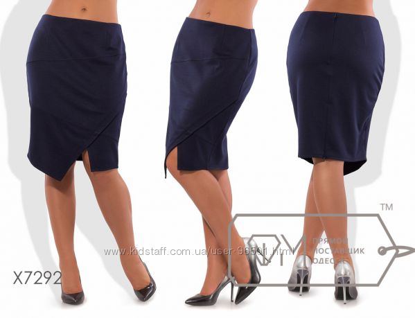Модель № X7294 - ТЕМНО-СИНИЙ Цена: 500грн Размеры: 48, 50, 52, 54, 56 Ткань: костюмка Длина: по внешнему шву - 86см, по внутреннему шву - 60см ( на резинке)