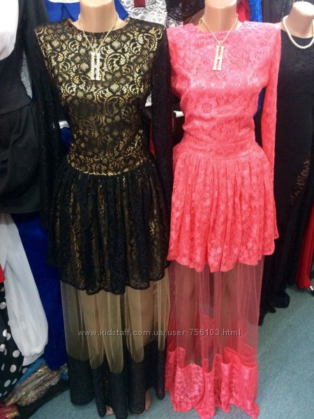 Размер 42,44,46 Длина: 150 см Длина рукава: 65 см Состав: Гипюр+сетка + трикотаж Цвета: черный