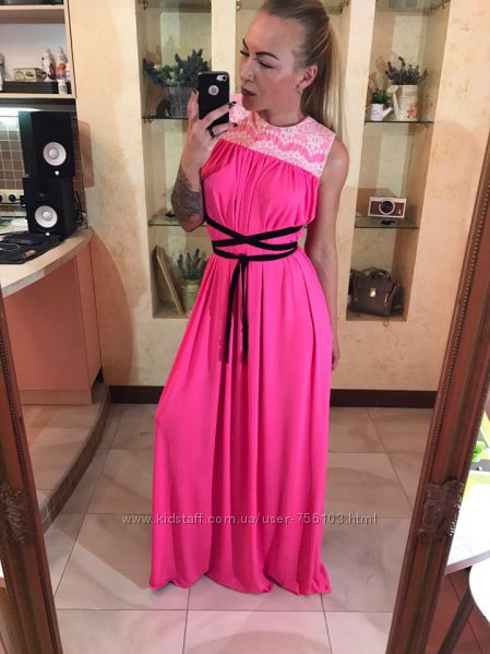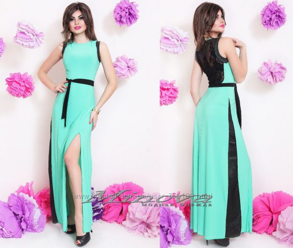 Размер 42, 44, 46, Состав: гипюр + габардин + сетка Длина: 145 см Длина рукава 61 см Цвета: розовый, зелёный, чёрный