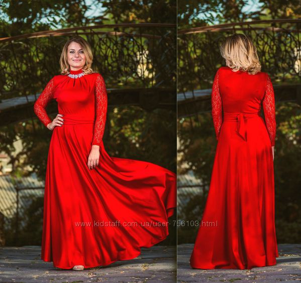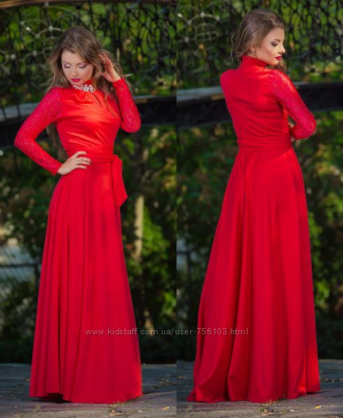 вечернее платье из шелкового атласа и дорогого гипюра. Размеры: s, m, l. Цвета: ярко-красный, темно-синий, бордо, зеленый бутылочный, синий электрик. Длина изделия 145 см.