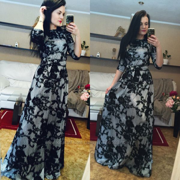 Размер 42,44,46 Ткань: гипюр + армани шелк Длина: 148 см Цвета: черный