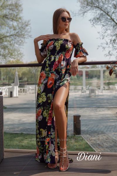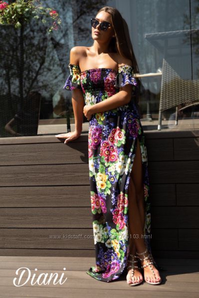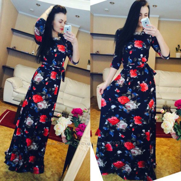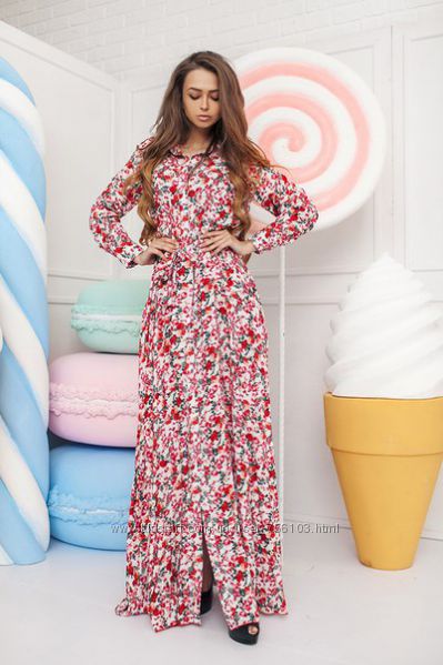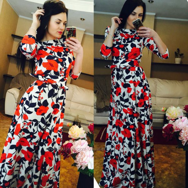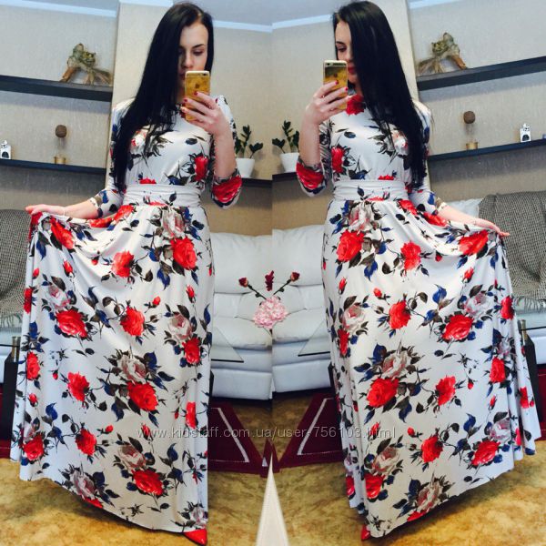 Нереальное платье в крупные розы в пол МИЛАН Ткань трикотаж-вискоза Размер С, М На рост до 180 см