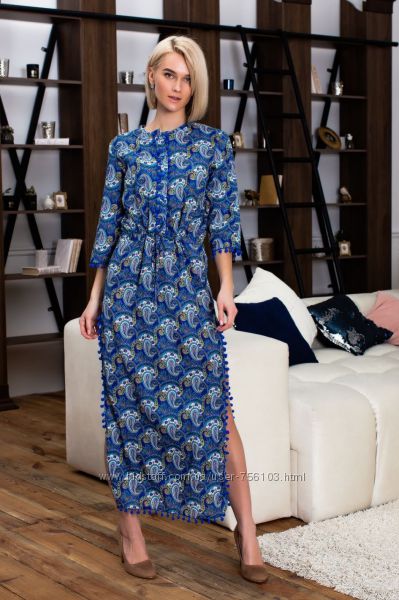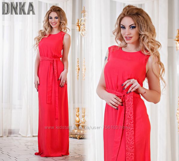 Платье №р747 размер: с.м.л.хл Ткань: штапель,гипюровый пояс в комплекте Штапель — мягкая непрозрачная ткань с набивным рисунком, изготовленная на основе вискозы с добавлением натуральных волокон (хлопка).