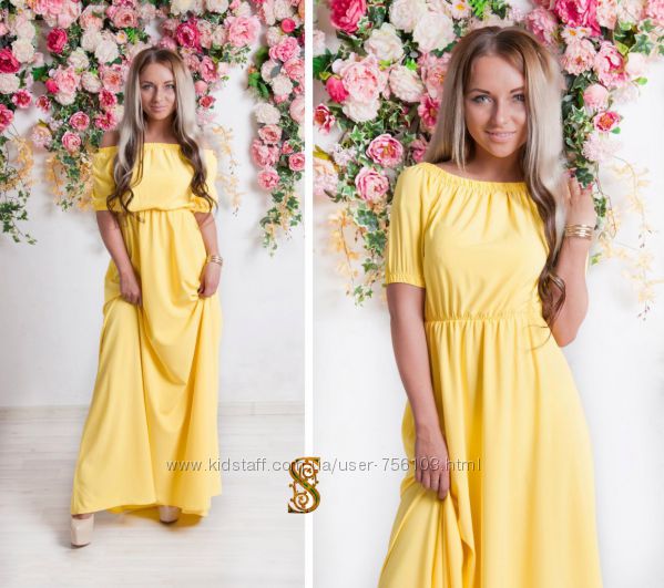 Платье Артикул № 365 в 7-и расцветках: Желтый, голубой, беж, ментол, персиковый, бордо, зеленый Ткань: Микродайвинг Размеры 42, 44, 46 Рост модели 170 см