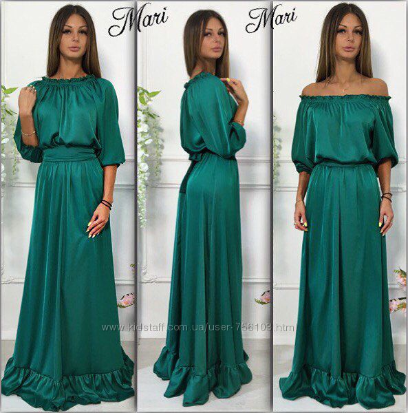 МОДЕЛЬ 8015 ПЛАТЬЕ В ПОЛ , ДЛИННА 150 С ПОЯСКОМ С ОБОРКОЙ НА ПЛЕЧАХ И ПО НИЗУ,ОСНОВА ПОЛИРОВАННЫЙ ШЕЛК РАЗМЕРЫ 1 42-44 2 44-46