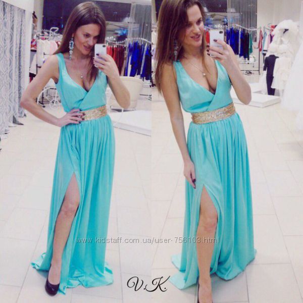 Ткань: софт, сетка Цвет: минт с цветочным принтом Размеры: 42, 44, 46, 48 Длина: ~148 см Привлекательное вечернее платье София с V-образным выкатом и расклешенной юбкой, имеющей пикантный разрез. Декольте платья прикрыто сеточкой телесного цвета.