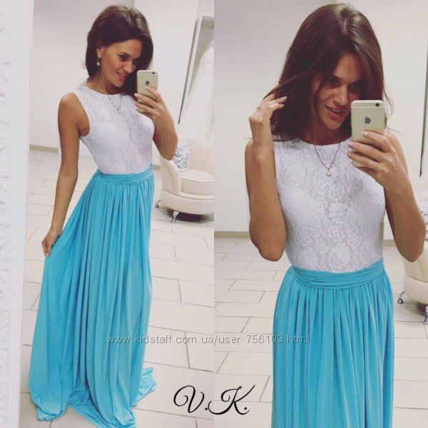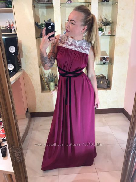 Размер 42,44,46 Ткань: верх: гипюр+подкладка низ: армани шелк длина 145 см+ (бретельки регулируются) Цвета: бутылка, розовый, голубой, бордо, лиловый, капучино