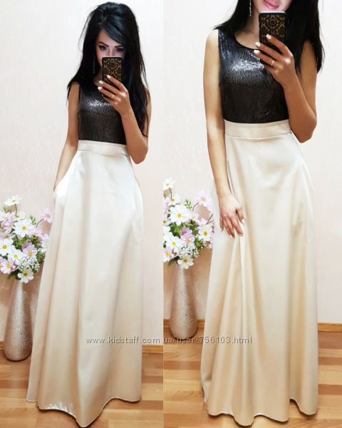 Размер 42,44,46 Ткань: паетки на велюровой основе Длина: 145 см Цвета: черный, золото, синий, зеленый