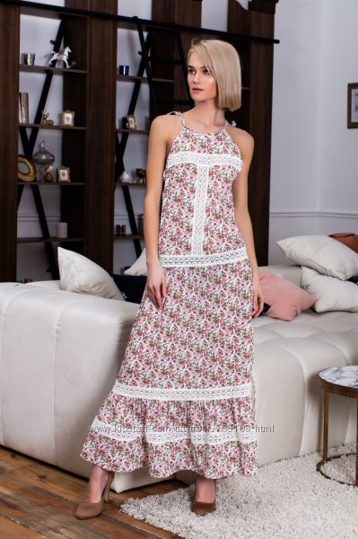 Нереальное платье в пол МИЛАН Ткань лён набивной Размер С, М