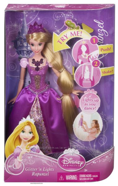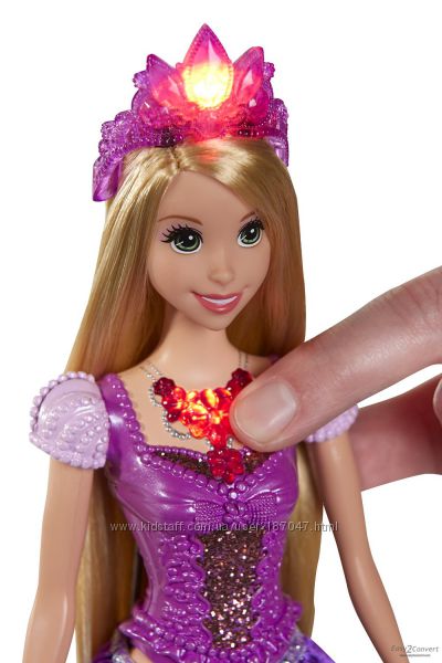 Рапунцель. Производитель MattelНа куклах невероятно красивые платья и волшебные диадемы. Если нажать на колье куклы, то оно начинает светиться вместе с диадемой. 550 грн