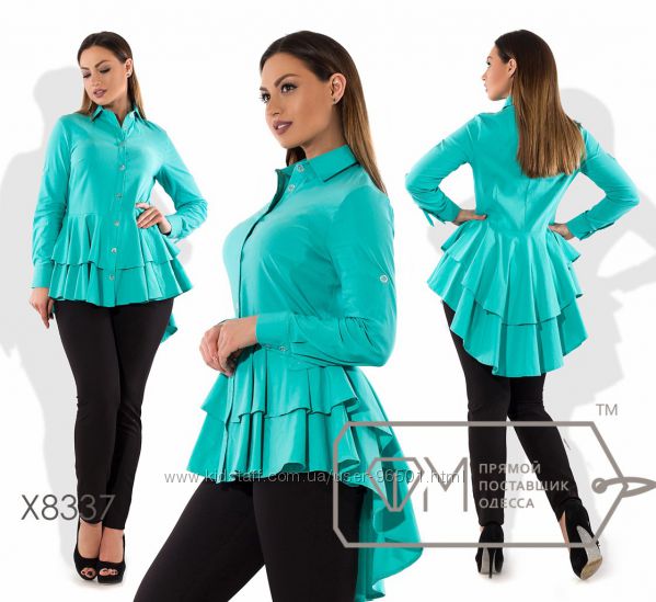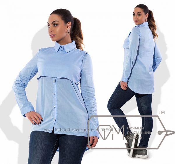 Модель № X6153 - БЛУЗА Цена: 420грн Размеры: 48, 50, 52, 54 Ткань: поплин стрейч Длина: 64см