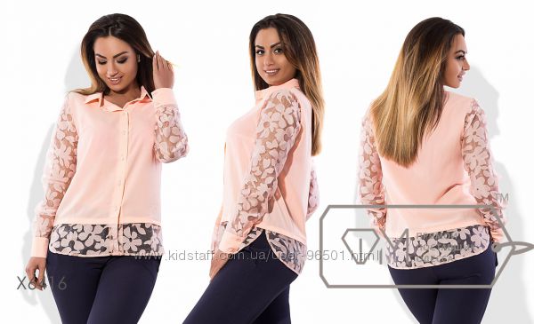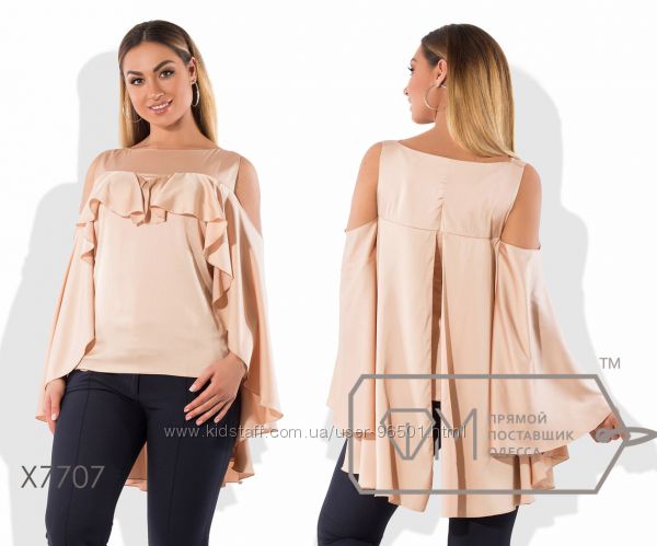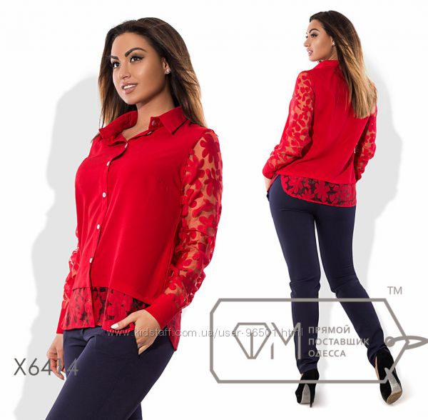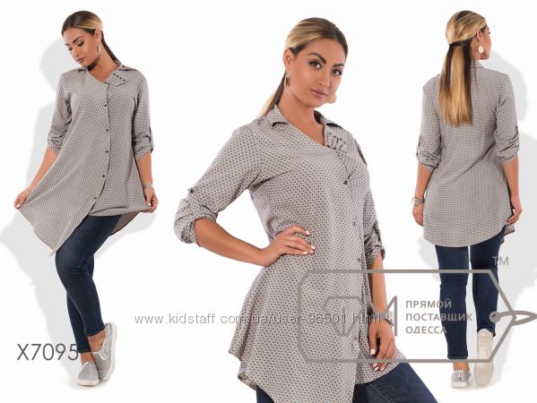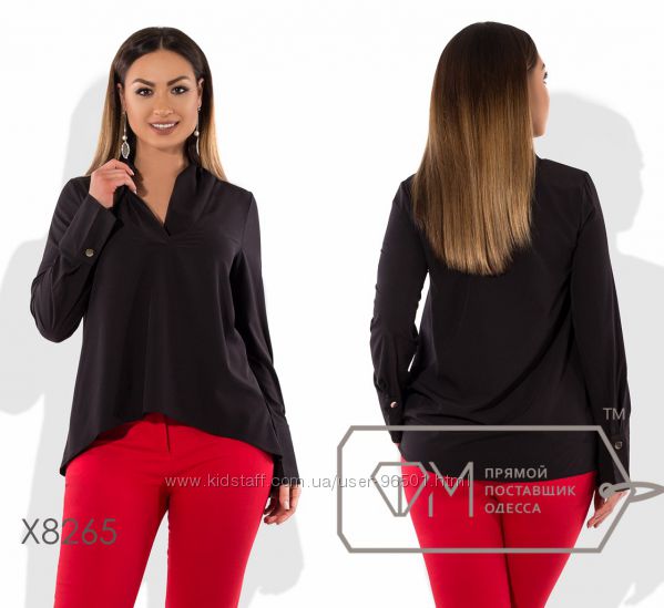 Модель № X1511 - БЛУЗКА Цена: 335грн Размеры: 48, 50, 52 Ткань - креп-шифон Длина - 69см/77см (впереди/сзади) Длина рукава - 67см