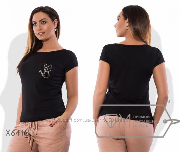 Модель № X4679 Цена: опт. - 330 грн Размеры - 48, 50, 52, 54 Ткань - вискоза, надпись - стразы Длина - 60см Длина рукава - 38см