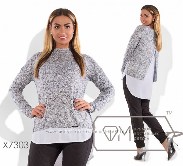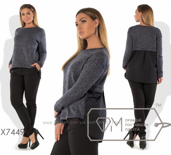 Модель № X3267 Цена: опт. - 430грн Размеры: 50, 52, 54, 56 Ткань - ангора + креп-шифон Длина - 72см Длина рукава от горловинки - 71см