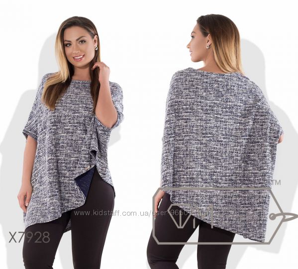 Модель № X5629 Цена: опт. - 550грн Размеры - 50, 52, 54, 56 Ткань - вязка с люрексовой нитью Длина - 65см70см Длина рукава от горловинки - 72см