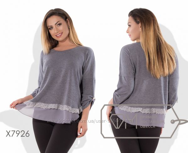 Модель № X4934 Цена: опт. - 370 грн Размеры - 48-50, 52-54 Ткань - креп-шифон Длина - 65см74см Длина рукава - 60см