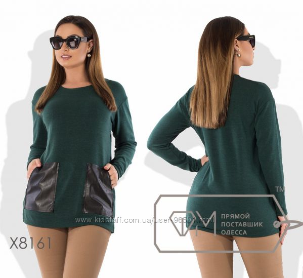 Модель № X4939 Цена: опт. - 400 грн Размеры - 48-50, 50-52, 52-54 Ткань - трикотаж стежка, экокожа Длина - 73см Длина рукава от горловинки - 50см