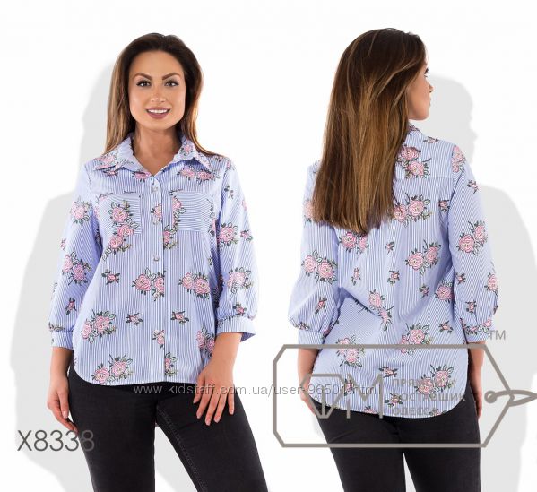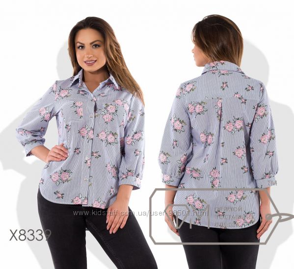 Модель № X6150 - БЛУЗА Цена: 420грн Размеры: 48, 50, 52, 54 Ткань: поплин стрейч Длина: 64см