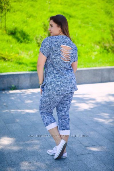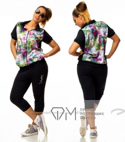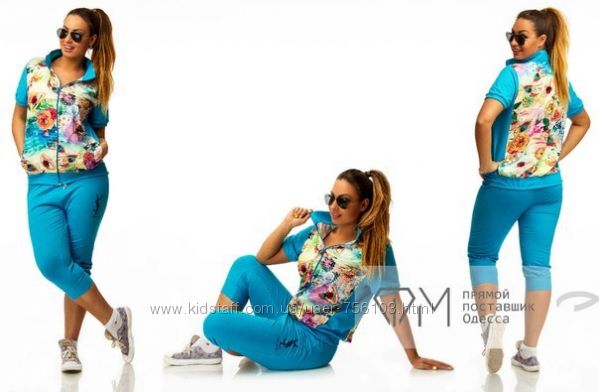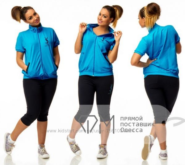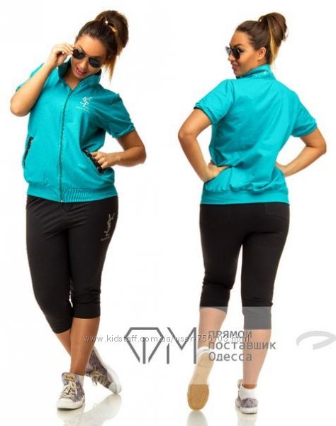 Размеры: 46-48, 48-50, 50-52 Ткань: двунитка Длина капри - 47см (по внутреннему шву) Длина кофты - 57см. 300 грн