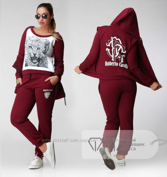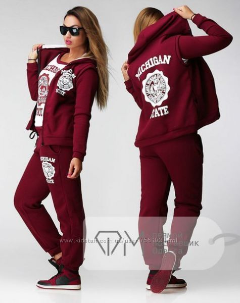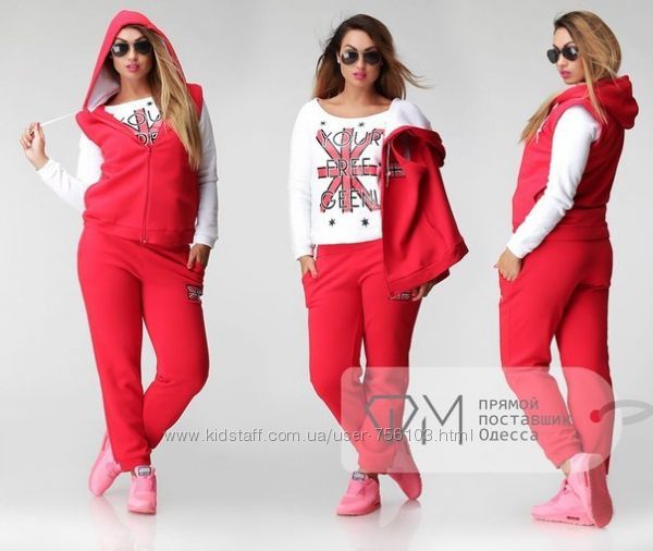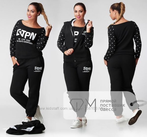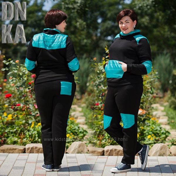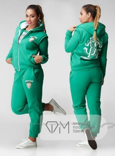 Размеры: 48, 50, 52, 54 Ткань - трехнитка Длина штанов по внутреннему шву - 78см Дина кофты - 63см Длина рукава - 60см