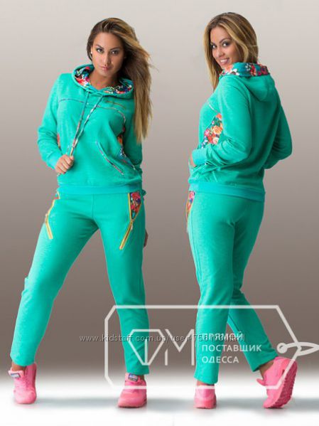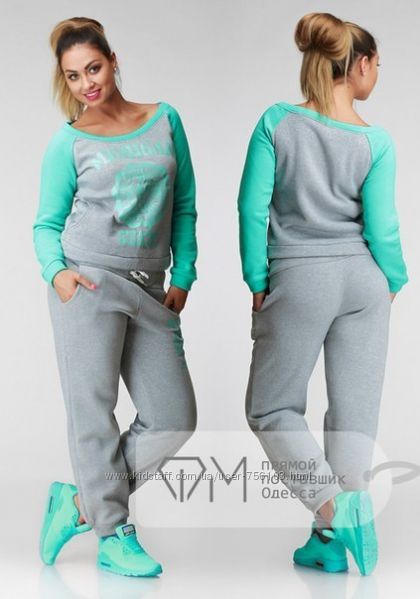 Размер: 48,50,52,54 ткань: 3-нитки (теплый - на флисе) цвета: только минт Длина штанов по внутреннему шву - 78см Дина кофты - 60см Длина рукава - 64см