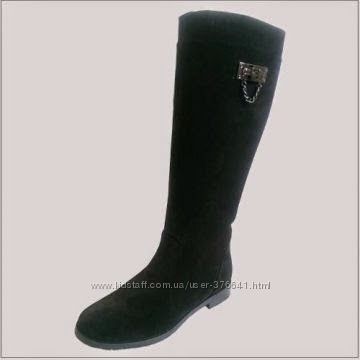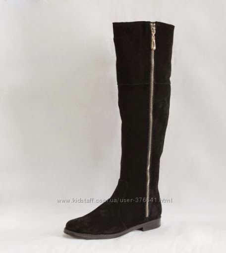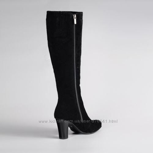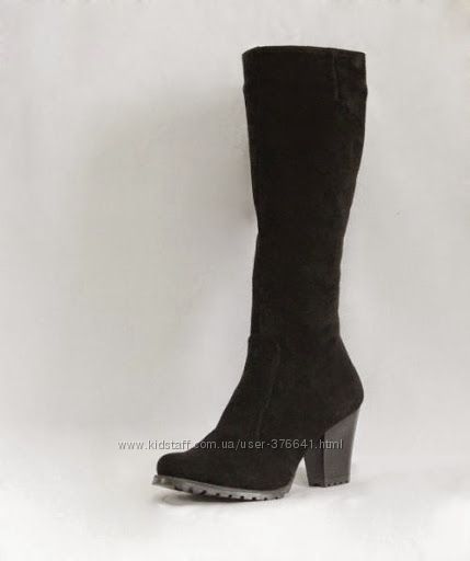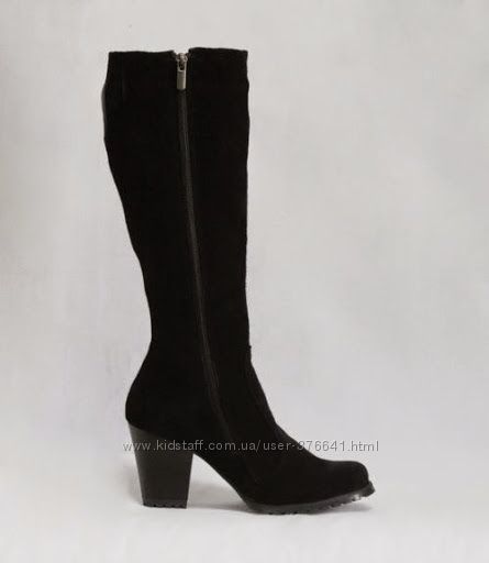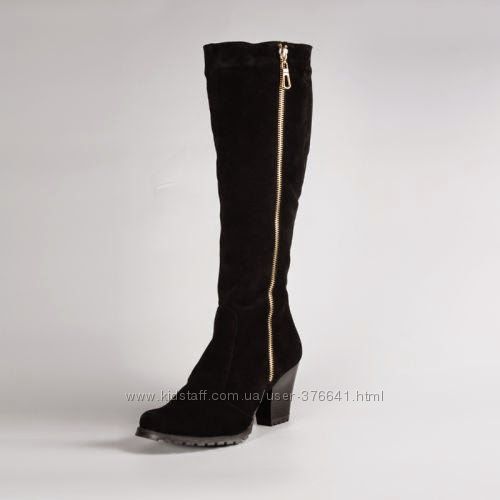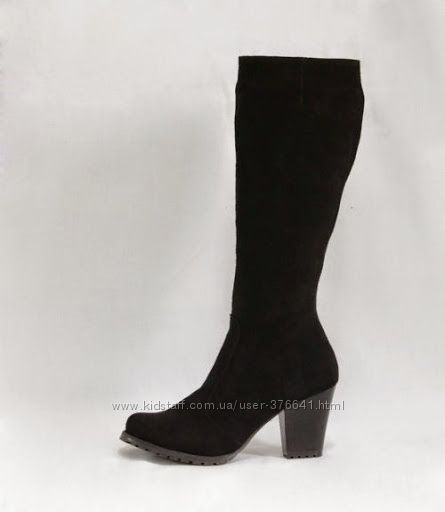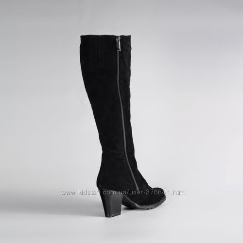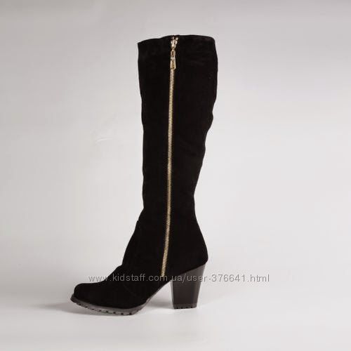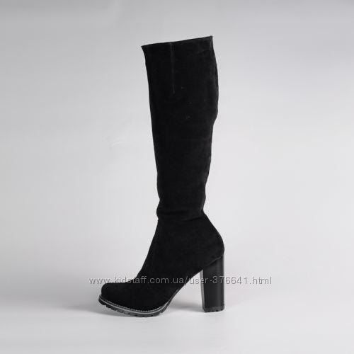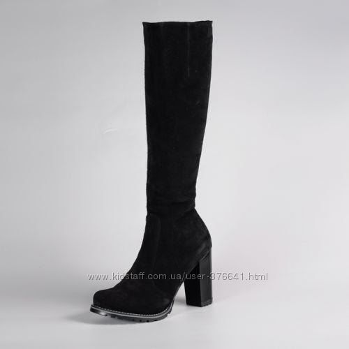 Сапоги Артикул кожи: черный замш Возможны любые цветовые решения по Вашему желанию. Материал верха: натуральный замш Внутренний материал: байкашерстьевро (на выбор) Высота каблука - 2,5 см. Высота сапога - 36 см. Объём голени: в 36р.-3436см, 37-38р.р.-