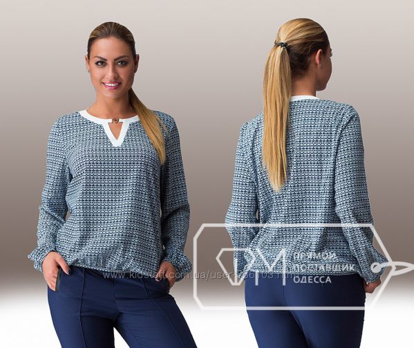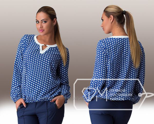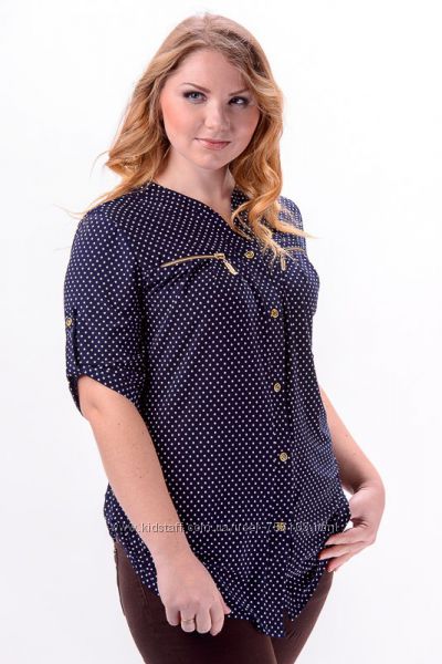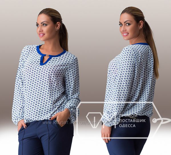АК Блуза 1775 Ткань: шифон, креп шифон Цвет: синий,белый,коралл, персиковый,горох Размер 48,50,52,54