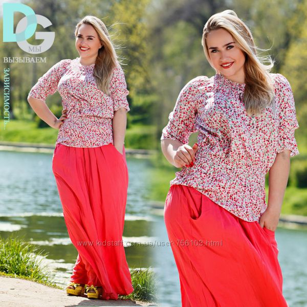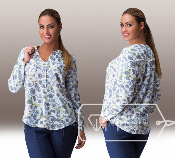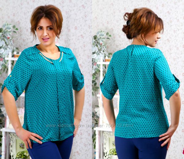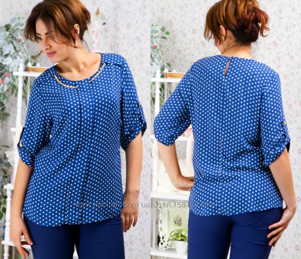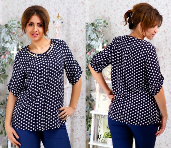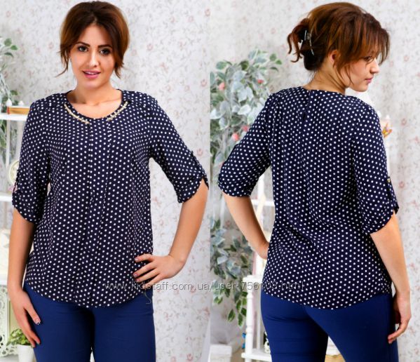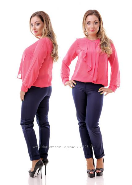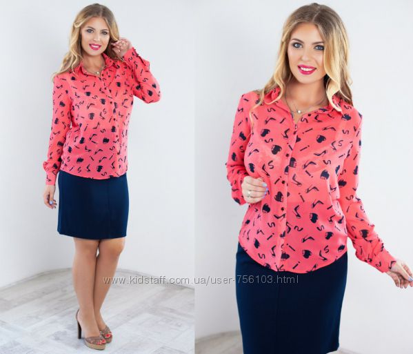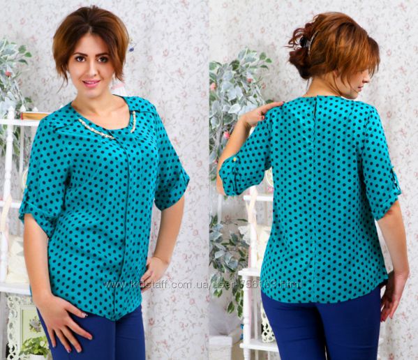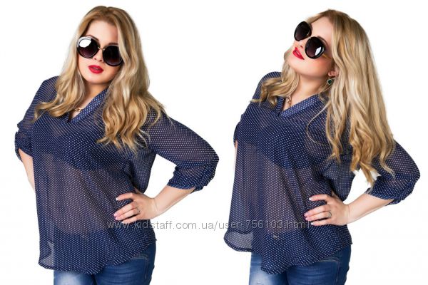 АК мод 1775 Ткань: шифон, креп шифон Цвет: синий, белый, коралл, персиковый, горох Размер: 48,50,52,54