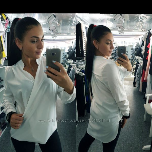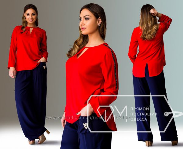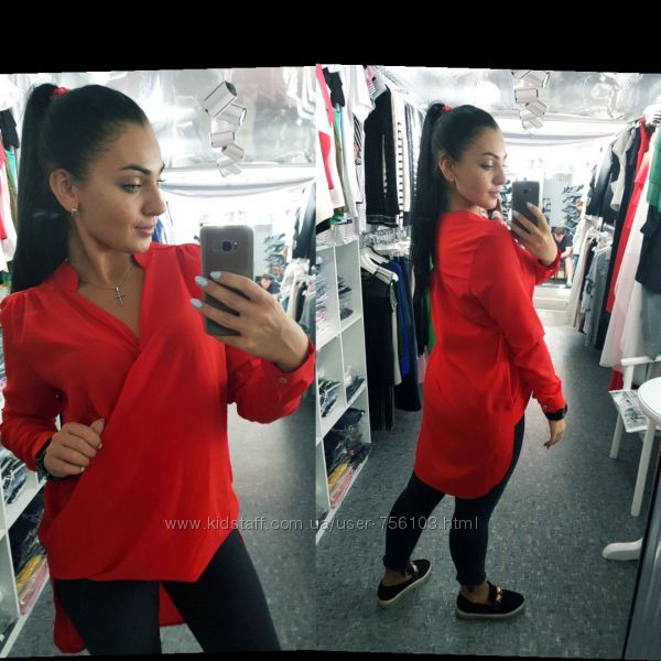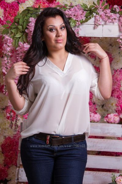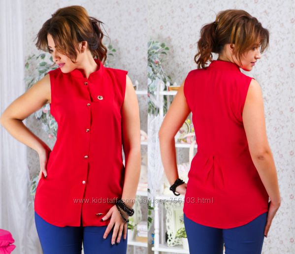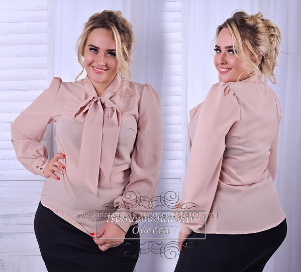 Блузка ЕУ № 0271 Размеры: 48, 50, 52 Цвета: белый, красный, беж ткань : креп шифон длина : 66 см длина рукава : 68\52 см