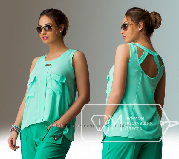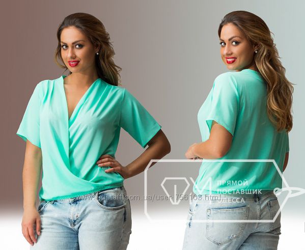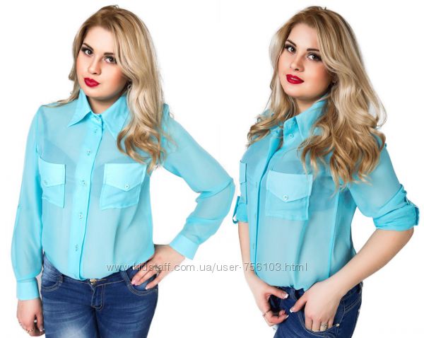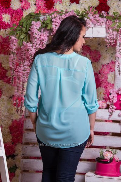 АК Шифоновая блузка 1703 Размер 48,50,52,54 Цвет мята,персик,синий