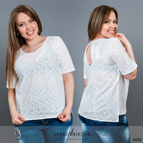 АК Блузка 1727 Ткань креп - шифон, трикотаж, гипюр. Размеры 48,50,52,54