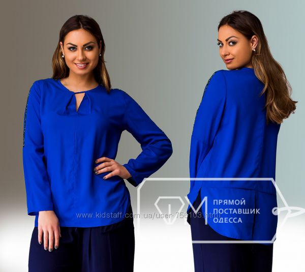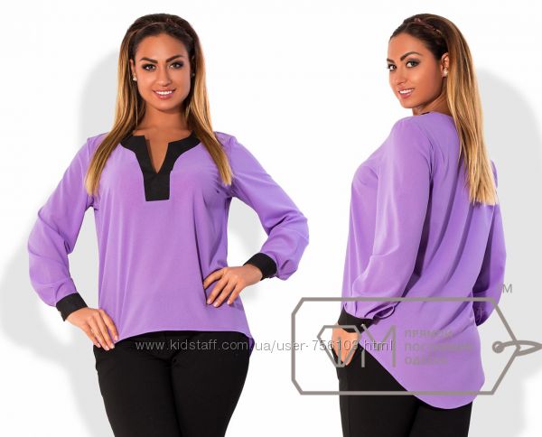 Размеры: 48, 50, 52, 54 Ткань - креп-шифон Длина - 69см77см (впередисзади) Длина рукава - 67см