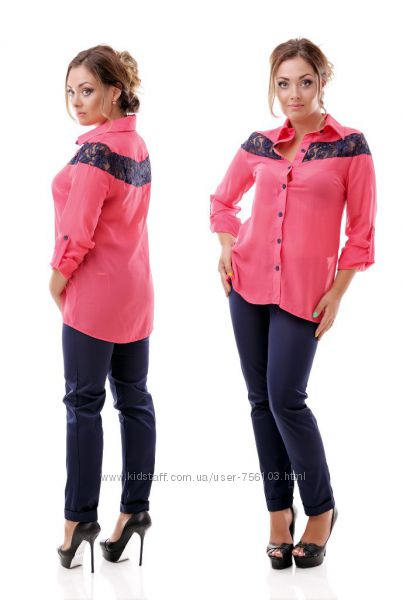 Размеры: 48-50, 52-54 Ткань - креп-шифон Длина - 58см Длина рукава - 24см