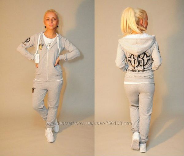 арт.: 148 спортивный костюм с двойным капюшоном на кнопках. Штаны и рукава на манжетах. р-ры: 42,44,46 ткань: 2-х нитка цвета: серый, синий длина: кофта 63 см; рукав - 61 см; штаны - 7899 см