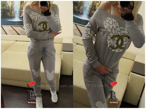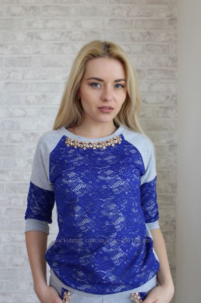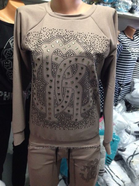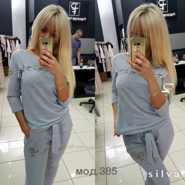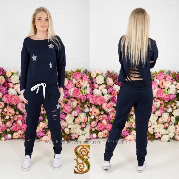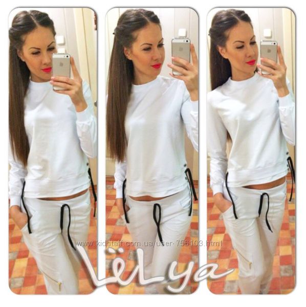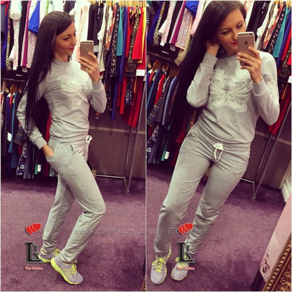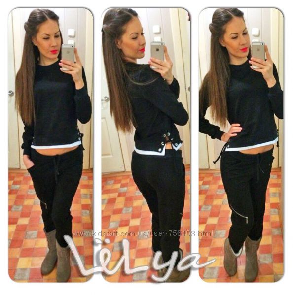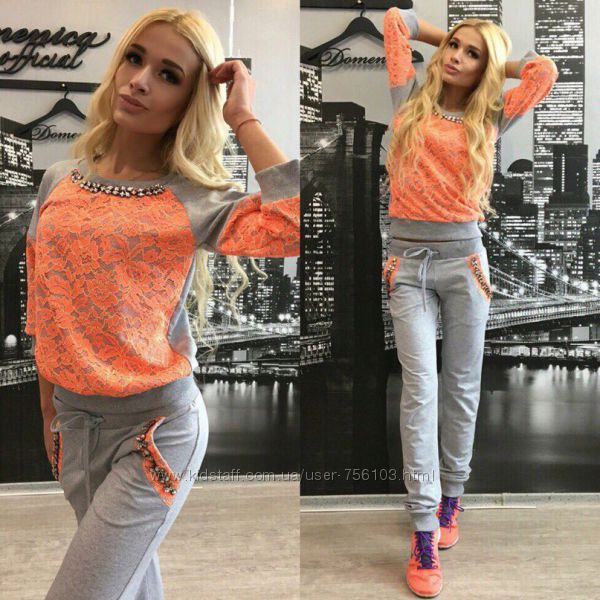 Р 1236 Спортивный костюм Ткань: Турецкая Двунитка, вставки из кружева и турецкой рибаны Отделка из дорогих камней svarovski Размер: С и М Большой размер под заказ