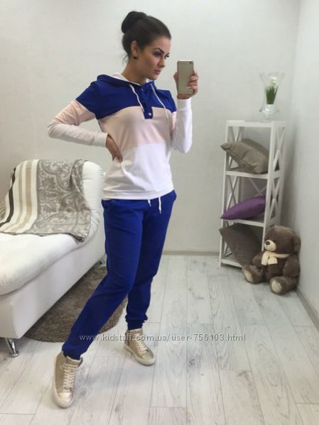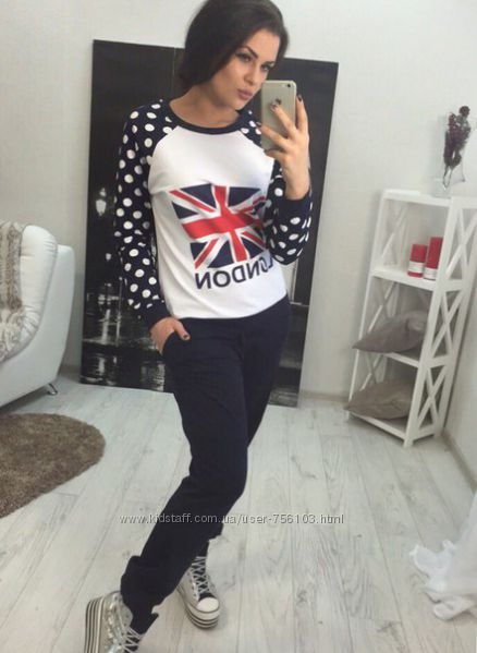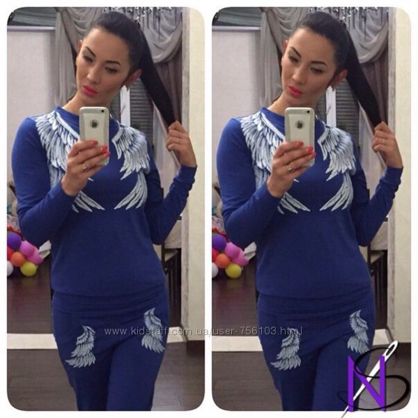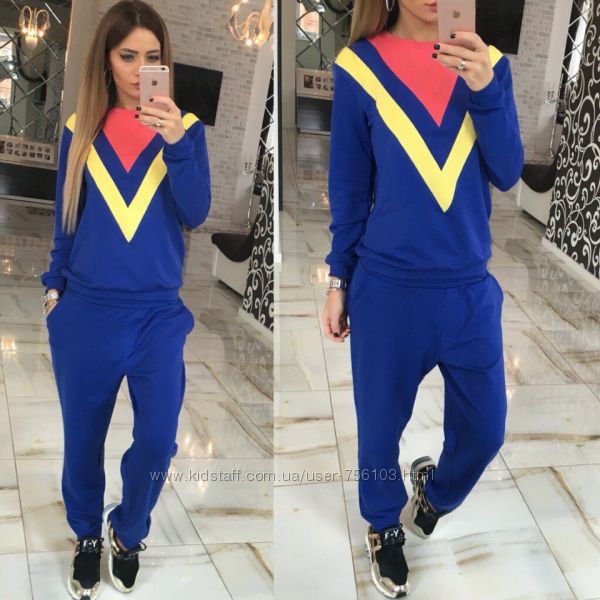 арт.: 145 спортивный костюм 2-ка с накатом и рукавами в принт. Штаны и рукава на манжетах. р-ры: 42,44,46 ткань: 2-х нитка скомбинирована с 2-х ниткой принт и тонкой вязкой цвета: синий рукав, серый рукав. длина: кофта 61 см, рукав-реглан - 68 см; штаны