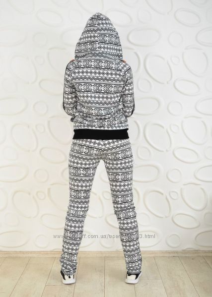 арт.: 143 спортивный костюм 2-ка с накатом и рукавами в принт. Штаны и рукава на манжетах. р-ры: 42,44,46 ткань: 2-х нитка скомбинирована с 2-х ниткой принт цвета: синий, серый длина: кофта 61 см, рукав-реглан - 68 см; штаны - 85105 см