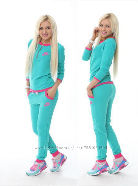 Спортивный костюм Найк Размер: S, M, L, XL Материал: трикотаж 2 нитка Цвета: коричневый, электрик, бирюза, розовый.