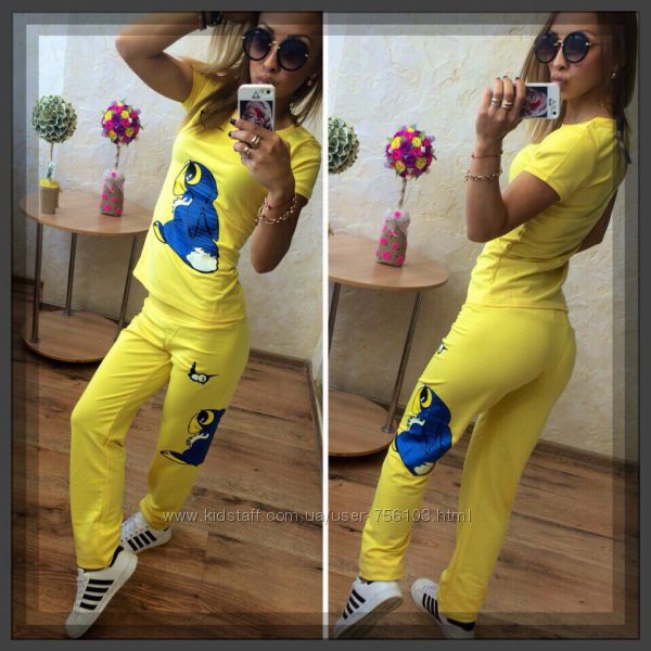Арт 004, костюм двойка КЕНЗО Цвет: желтый, серый, зеленый, электрик, черный Размер: С, М, Л Ткань: двунитка