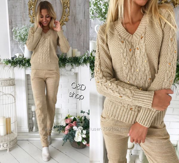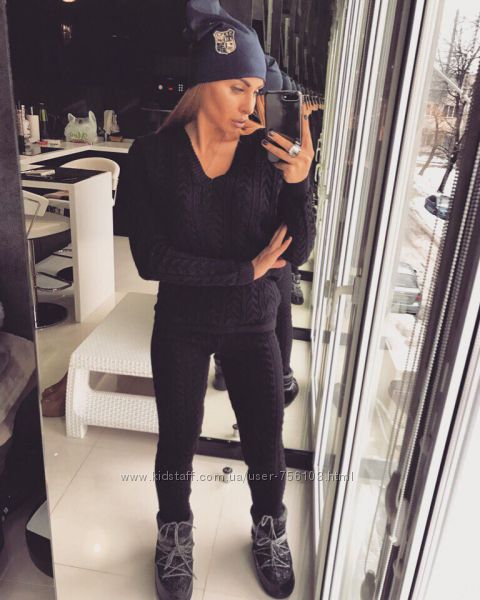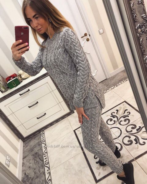 Вязанные костюмы от SRS.clothing brand Аналогов нет Очень теплые Высококачественная шерсть с добавлением акрила Размер универсал По бокам карманы Сзади 1 карман Штаны зауженные