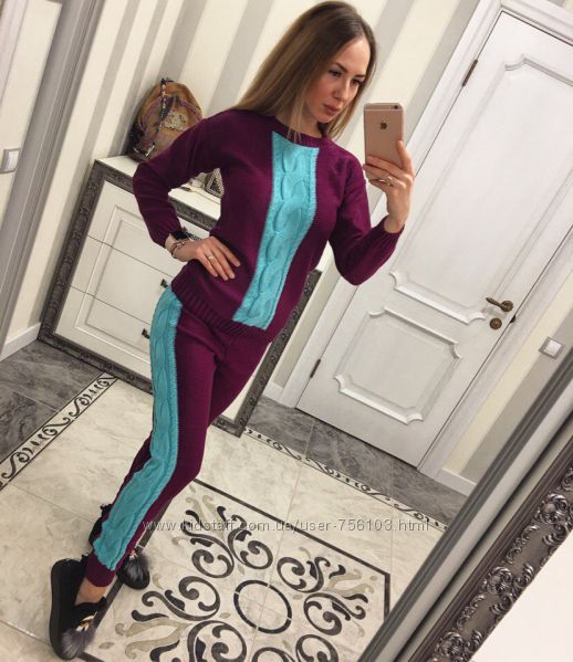 ХИТ СЕЗОНА !!!!!вязанный спортивный костюм ТМ DORATTI Пряжа шерсть с мохером (двойная вязка)ОЧЕНЬ ТЁПЛЫЙ !безумно КРАСИВЫЙ 4246