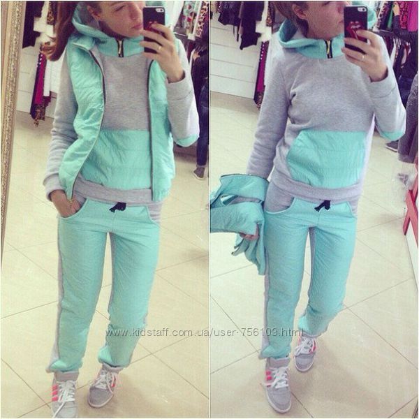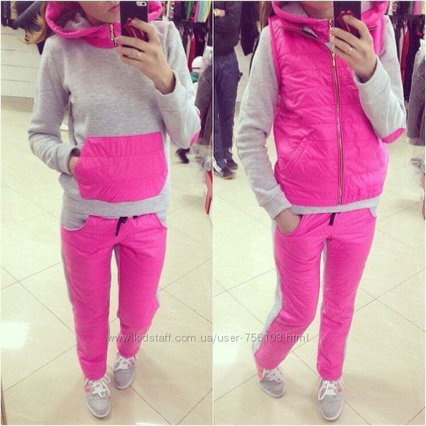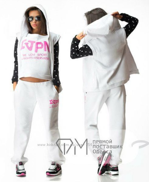 Размеры: S, M, L Ткань: трёхнитка Длина: верх 53 см, рукав 49 см, жилет 59 см , штаны 72 см по вн.шву