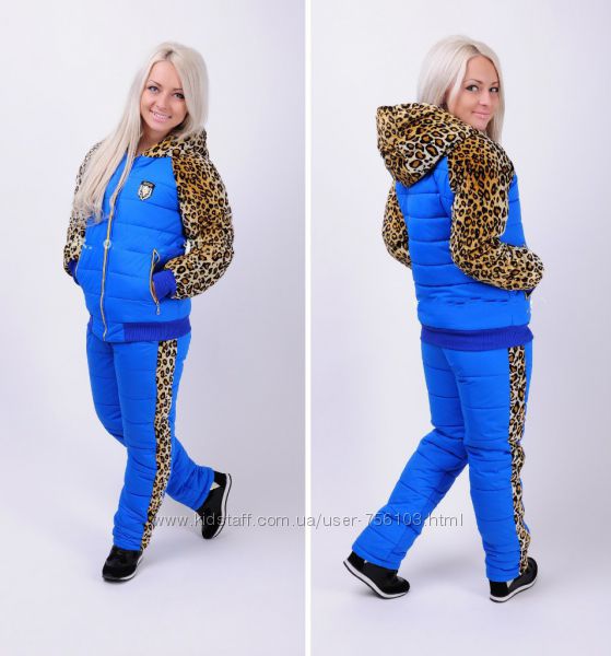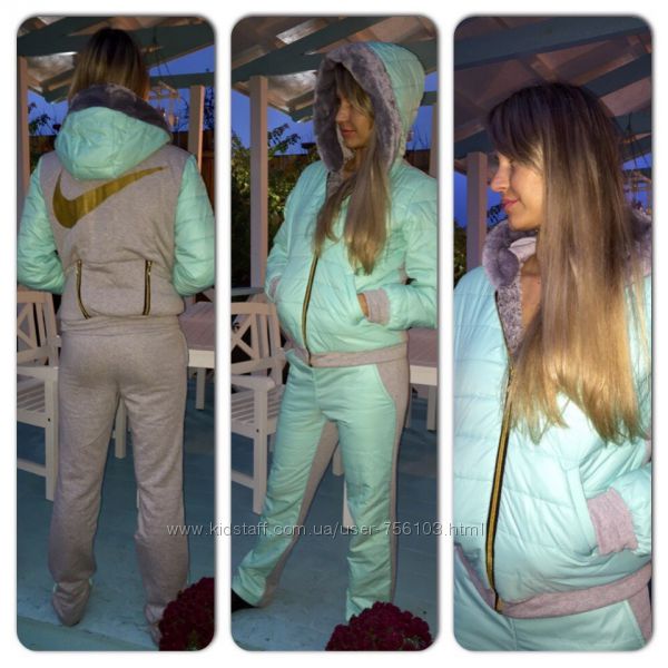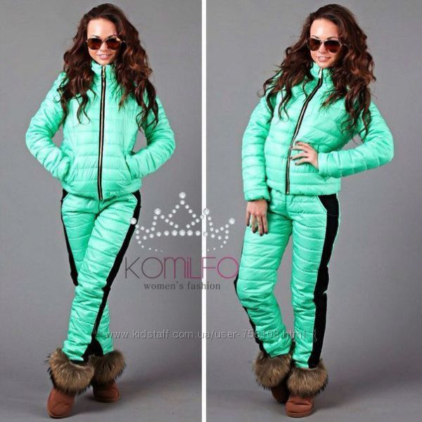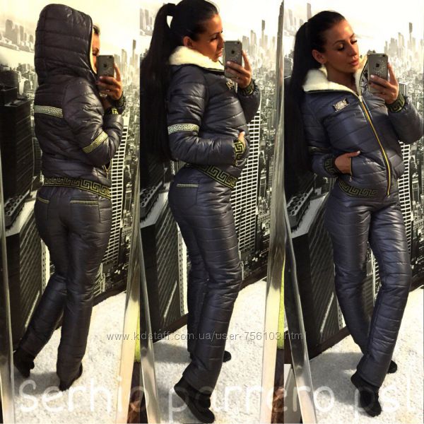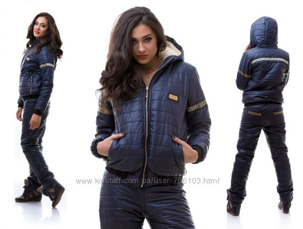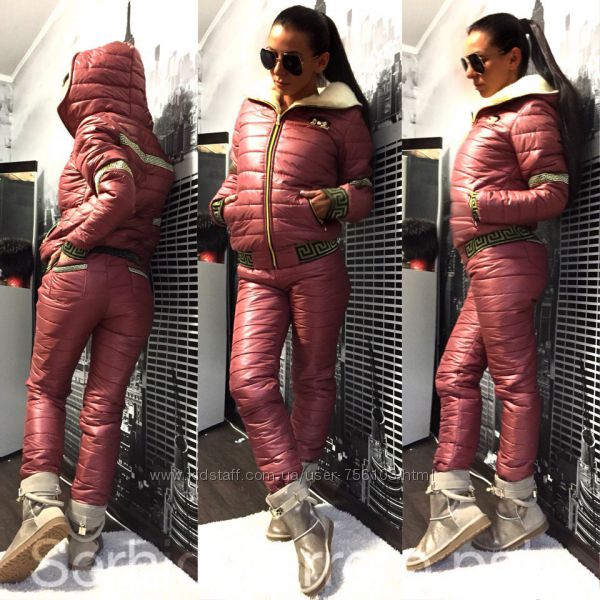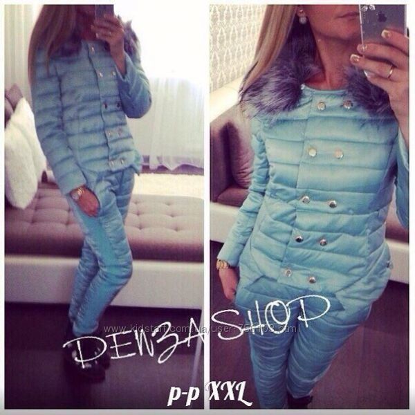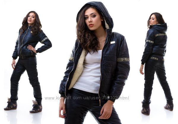 р-ры: 36-38-40 Брюки - плащевка с трехниткой, куртка - трехнитка с плащевкой, внутри синтепон, подкладка на меху, капюшон с мехом.