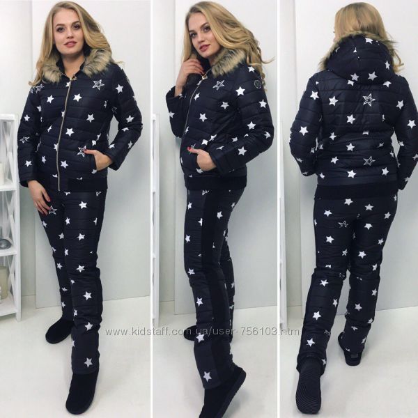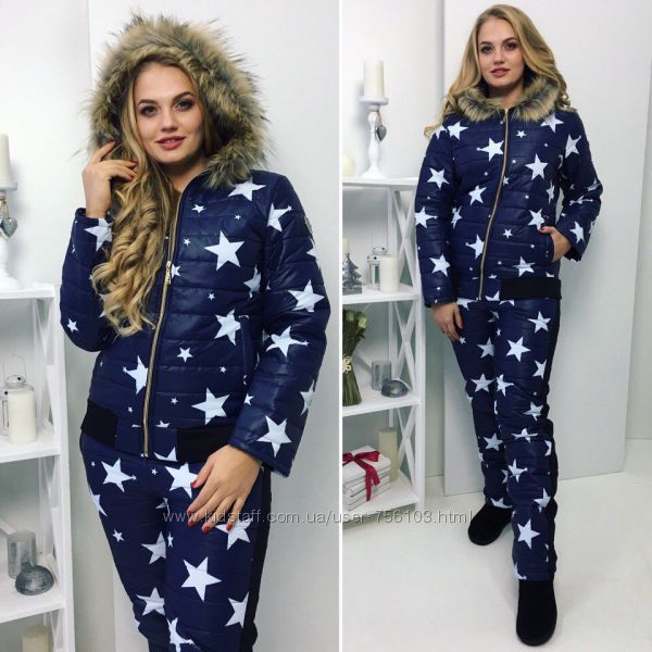 мод. 2071 спортивный костюм Звёзды Хит 2016 - норма Цвет 2: черный , синий Ткань : плотная плащевка , 150 синтепон - евро зима Фурнитура : Турция змейка голд на капюшоне мех енот - супер качество Размер 3 : 42 , 44 , 46