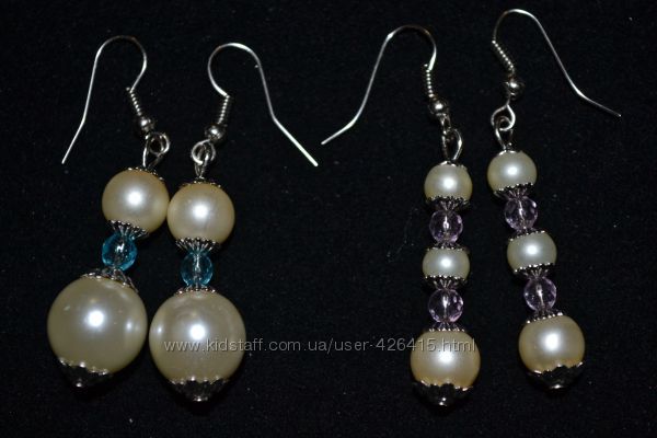 Серьги Жемчужинки . Цена 15,00грн. Описание: швензы без никеля (цвет: платина), жемчужные бусины(стекло), хрусталь. Длина со швензой : 5см.
